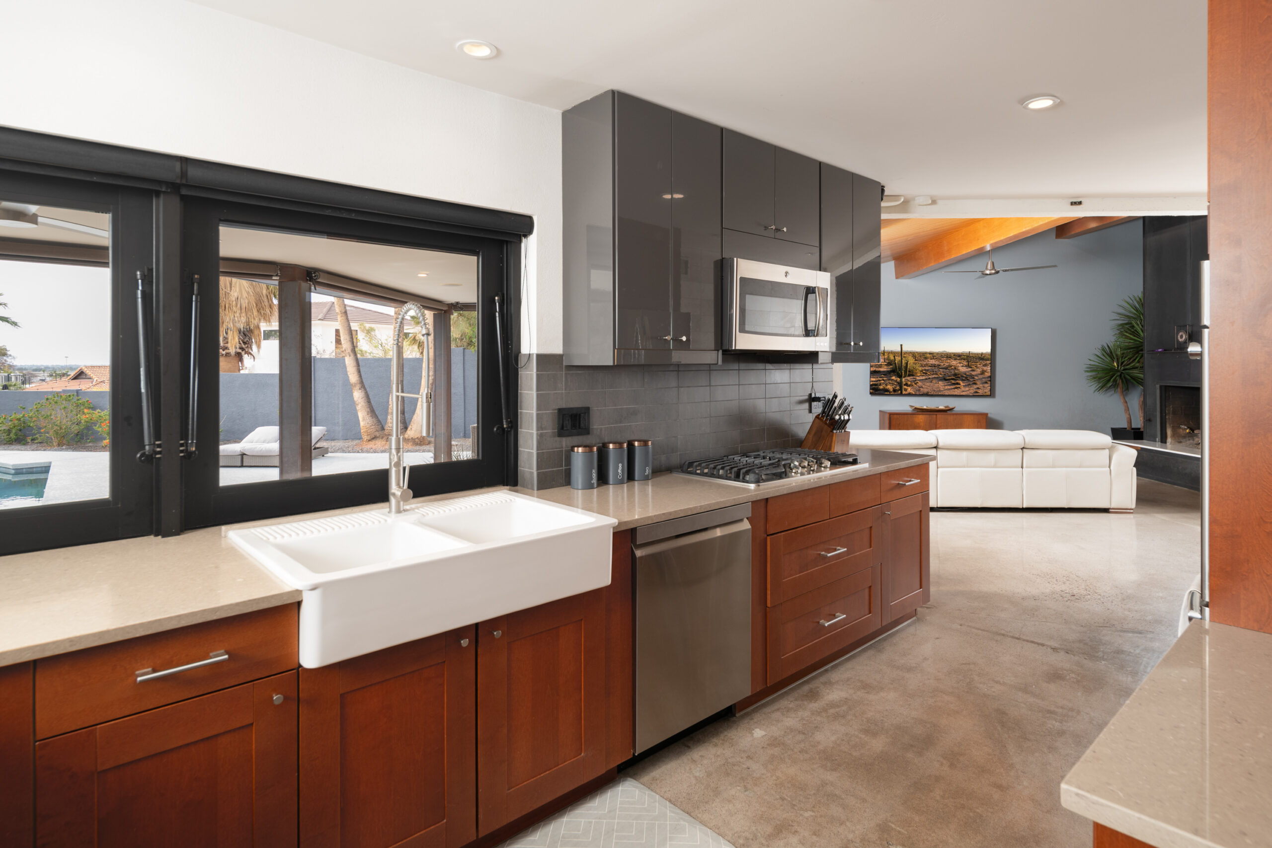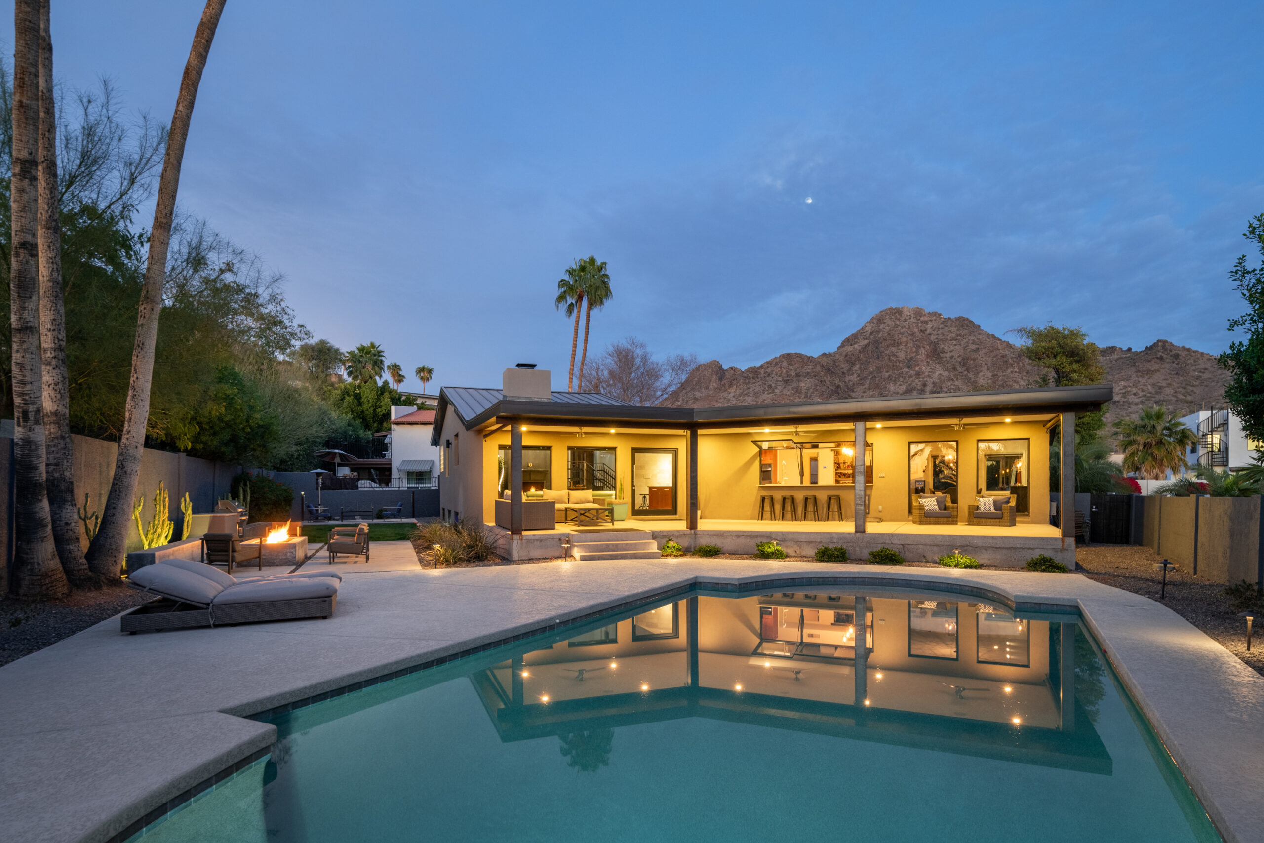 Tucked away on a quiet cul-de-sac, this sleek, modern home offers sweeping views of Squaw Peak and gorgeous sunset views. The home showcases stunning architectural finishes, including honed concrete, sandblasted block, a steel fireplace, raw marble, and vaulted mahogany ceilings. A seam steel roof completes the contemporary look. The gourmet kitchen features quartz countertops, a farm sink, gas cooking, double ovens, and a walk-in pantry. The master retreat boasts modern closets, a soaking tub, shower with dual heads, and dual sinks. The outdoor space is perfect for entertaining with a gorgeous pool, expansive decking, and covered patio with an indoor/outdoor 6-seat bar. Other upgrades include pivot doors, quality windows, Trane AC units, 4K surveillance, and an office w/ built-in desk. This stunning home is not to be missed!